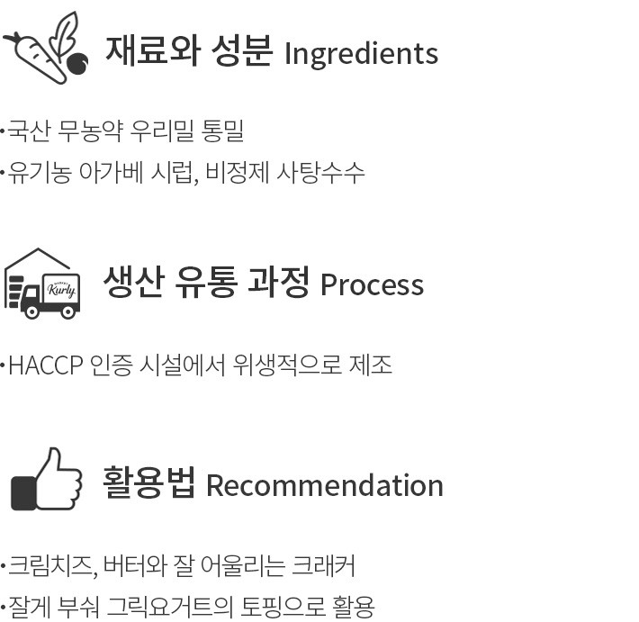 ?특징:국산 무농약 통밀과 우유로 만들어 고소한 풍미가 살아 있는 크래커에요.
