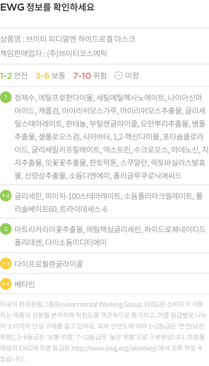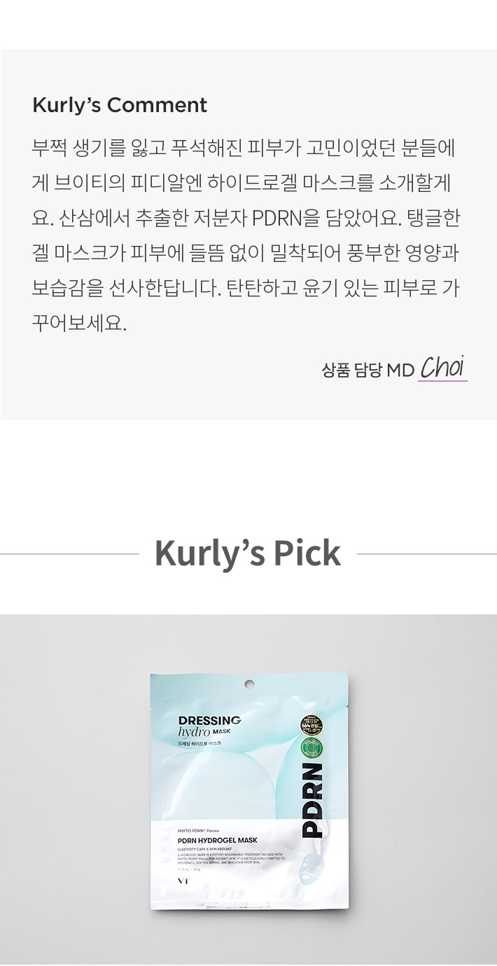 피디알엔 하이드로겔 마스크・ 중량:1매(33g)