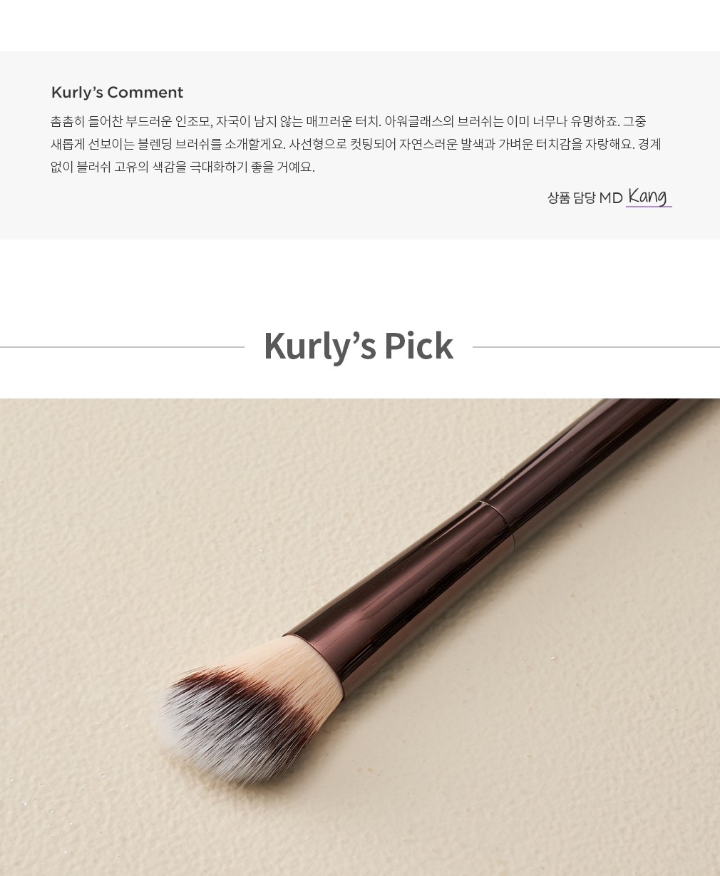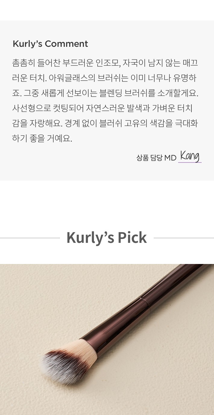 ・ 특징:블러쉬와 함께 사용하기 좋은 고급 인조모 브러쉬예요. 사선형으로 컷팅되어 있어 자연스러운 발색을 도와줘요.