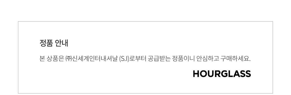 아워글래스는 뷰티 스페셜리스트 카리사 제인스가 '모던 럭셔리'와 '비건'을 모토로 론칭한 럭셔리 메이크업 브랜드예요. 동물을 인간과 마찬가지로 모든 감정을 느끼는 존재로 인식하며,동물 실험을 배제하는 크루얼티 프리 뷰티를 표방하고 있죠. 감각적인 패키징과 베일처럼 부드럽게 감기는 텍스처,자연스럽지만 세련된 발색. 이 모두를 담은 제품으로 모던하면서도 극적인 메이크오버 뷰티를 경험해 보세요.