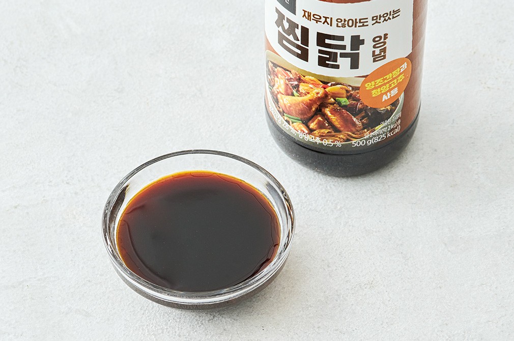 주방 한켠에 챙겨두면 든든한 청정원의 찜닭 양념을 소개할게요. 양조간장을 베이스로 만들어서 입에 착 달라붙는 감칠맛을 자랑하는데요. 여기에 청양고추의 알싸한 매콤함을 더했지요. 양념 후 재우지 않고 바로 끓여도 잡내 없이 깔끔하게 즐길 수 있답니다.