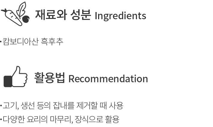 헤세드의 유기농 순후추로 요리에 톡 쏘는 매콤함을 더해 보세요. 캄보디아에서 수확한 흑후추를 잘 말린 다음 곱게 갈아 틴케이스에 담았답니다. 특유의 매운맛과 함께 복합적인 향미를 느낄 수 있어 만족스러워요. 요리의 마지막에 톡톡 뿌려 감칠맛을 살려보세요.