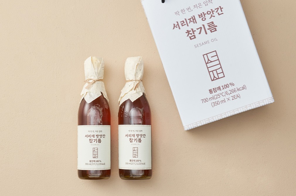 한 번의 저온 압착으로 얻은 [서리재] 방앗간 참기름 2구 세트