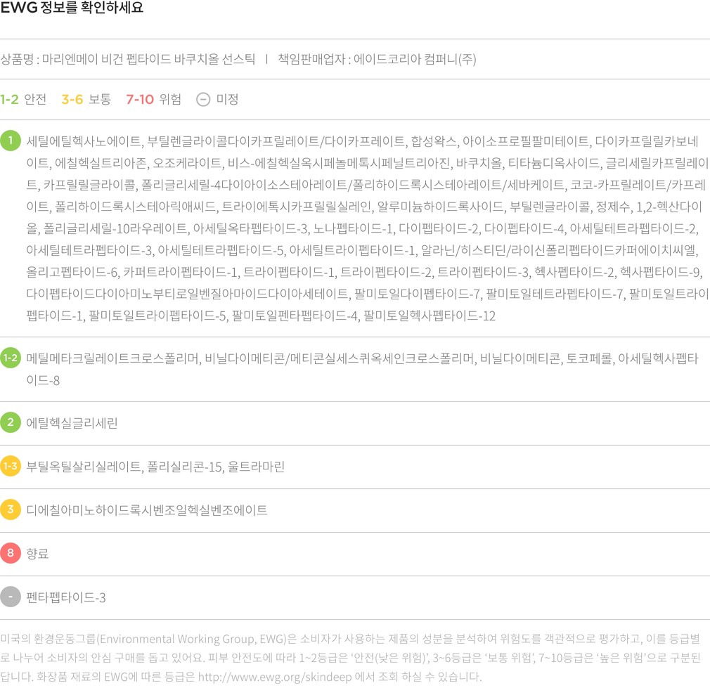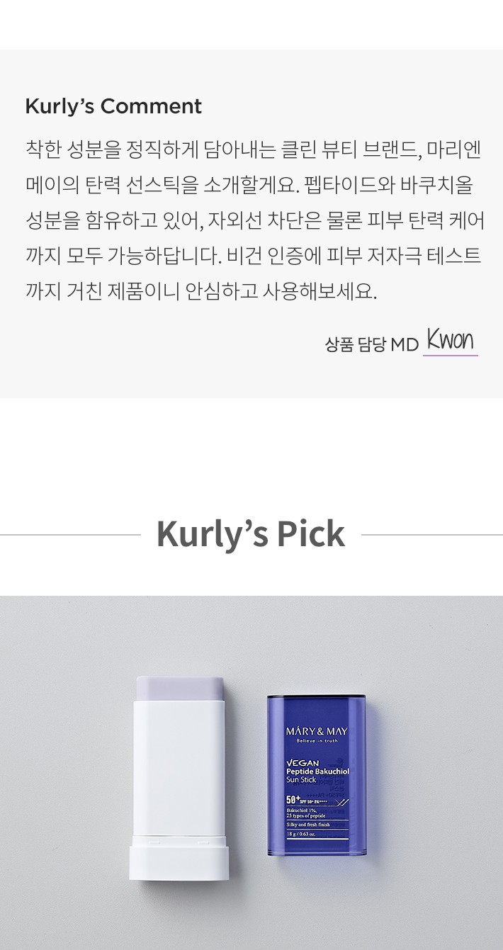 [마리엔메이] 비건 펩타이드 바쿠치올 선스틱 SPF50+ PA++++ 18g