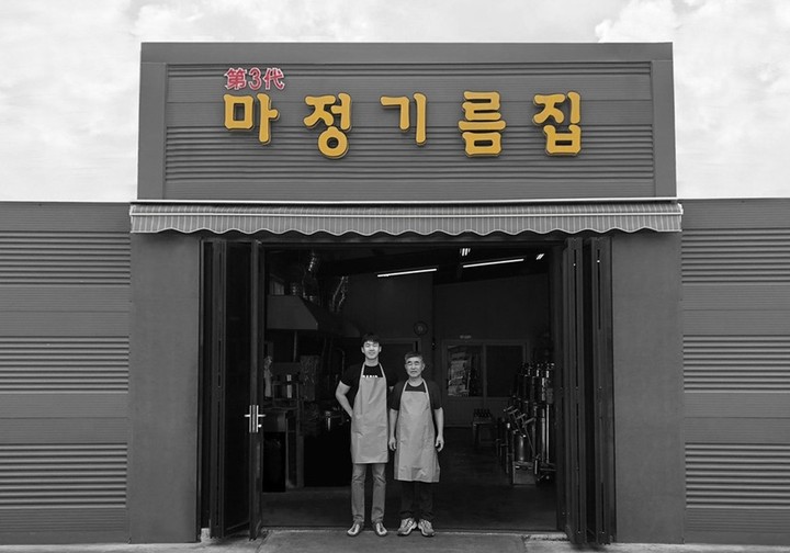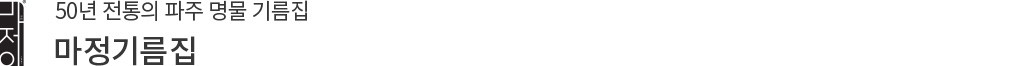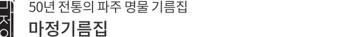 1976년,파주시 문산읍에서 처음으로 문을 연 마정기름집은 좋은 기름을 생산하겠다는 일념으로 3대째 기름 외길만을 고수하고 있는 곳이에요. 국내산 기름은 우리 땅에서 나고 자란 햇깨로만 착유하고,수입산 기름도 잘 여물어 품질이 좋은 깨만 꼼꼼히 엄선해 사용하지요. 나와 가족이 먹는 기름을 만든다는 마음으로 철이 지난 묵은 깨나 깨분은 일절 사용하지 않고 매일 깨끗한 새 기름을 착유하고 있답니다. 한 병에 오롯이 담아낸 방앗간 기름의 고소하면서도 진한 풍미,마정기름집과 함께 누려 보세요.