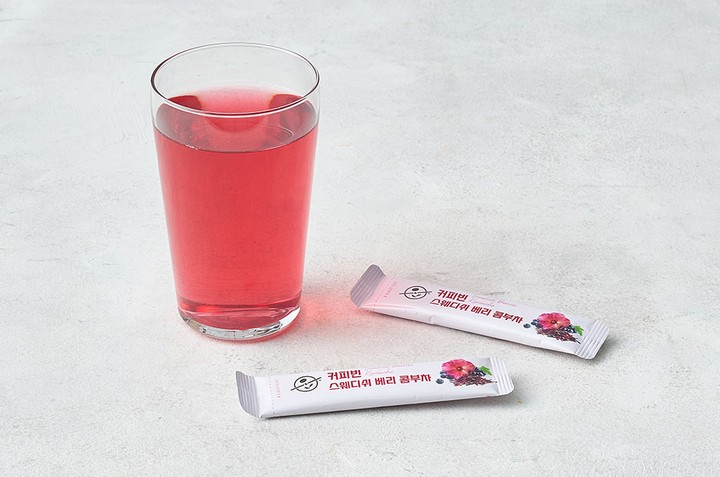 커피빈의 인기 메뉴인 스웨디쉬 베리 티를 콤부차로 만든 스웨디쉬베리 콤부차를 소개합니다. 엘더베리농축분말을 넣어 상큼한 베리 향이 은은하게 입안을 감돌고요. 콤부차농축분말을 더해 가볍게 톡 터지는 탄산감을 즐길 수 있답니다. 에리스리톨로 부담 없는 단맛을 완성했으니 당류 걱정 없이 즐겨보세요.