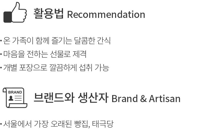 광복 이후,1946년에 서울의 작은 골목에 작은 빵집이 문을 열었어요. 백단심 무궁화를 닮은 간결한 그림과 ‘태극당’이라는 이름이 걸렸는데요. 광복의 나라를 꿈꿨던 우리 민족의 이상을 담아 내디딘 첫걸음이었답니다. 태극당은 모두가 배부르고 맛있게 먹을 수 있는 빵을 굽기 시작했어요. 그리고 그 70여 년의 세월을 함께한 제과장들이 한결같은 맛과 전통을 이어오고 있답니다. 변하지 않는 마음과 풍미를 담은 베이커리,태극당을 이제 컬리에서 만나보세요.