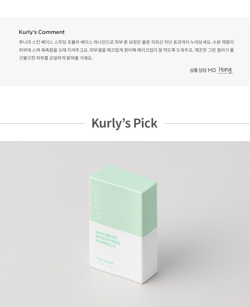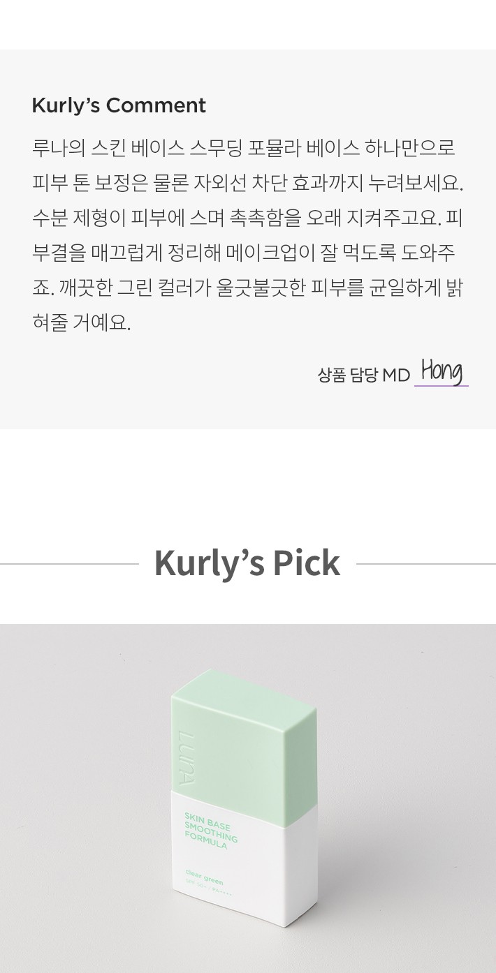 ・ 특징:맑고 깨끗한 라이트 그린 컬러의 베이스예요. 병풀잎추출물과 수분 성분이 함유되어 피부 진정에 도움을 줘요.