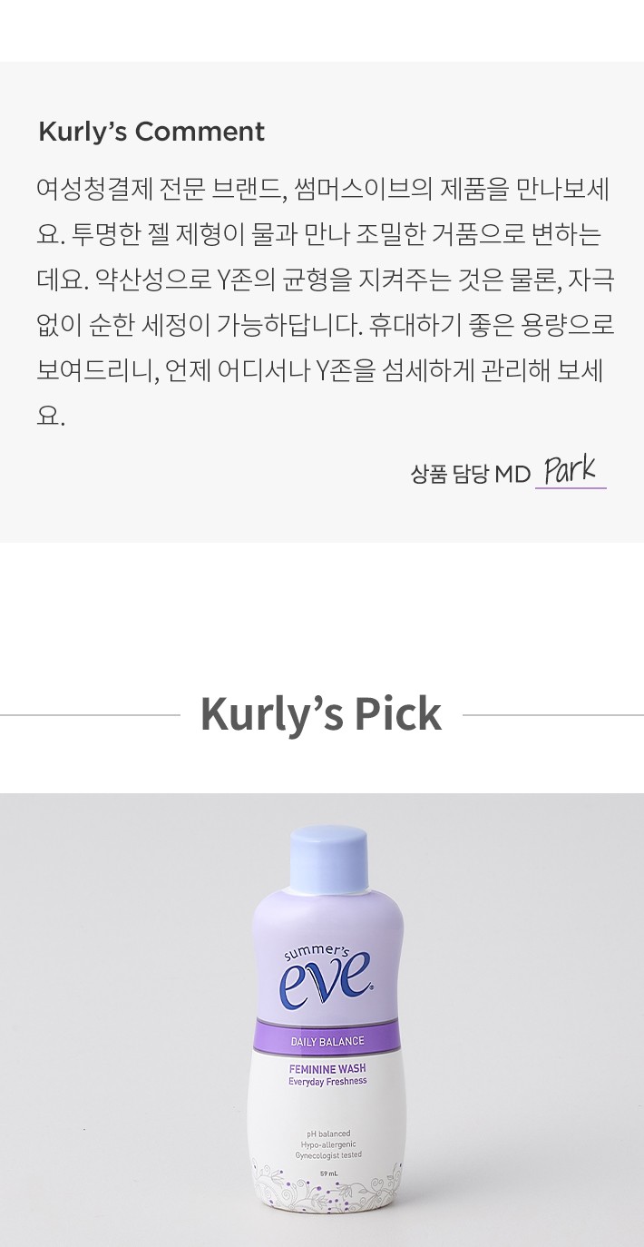 ・ 특징:프리바이오틱스가 함유된 약산성 여성청결제입니다. 여행 시 가볍게 챙겨가기 좋은 사이즈예요.