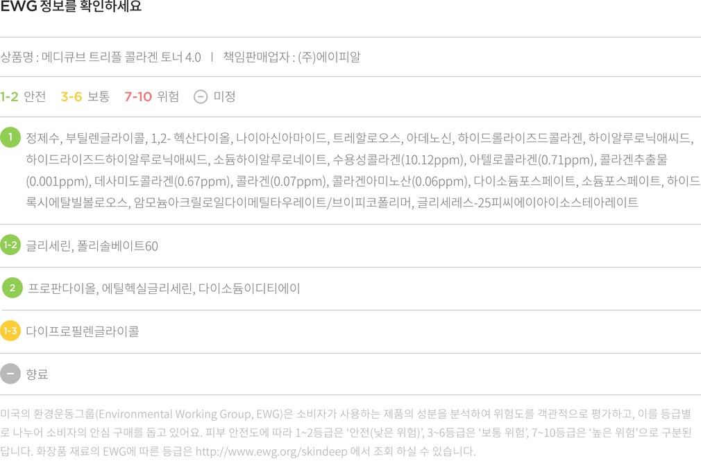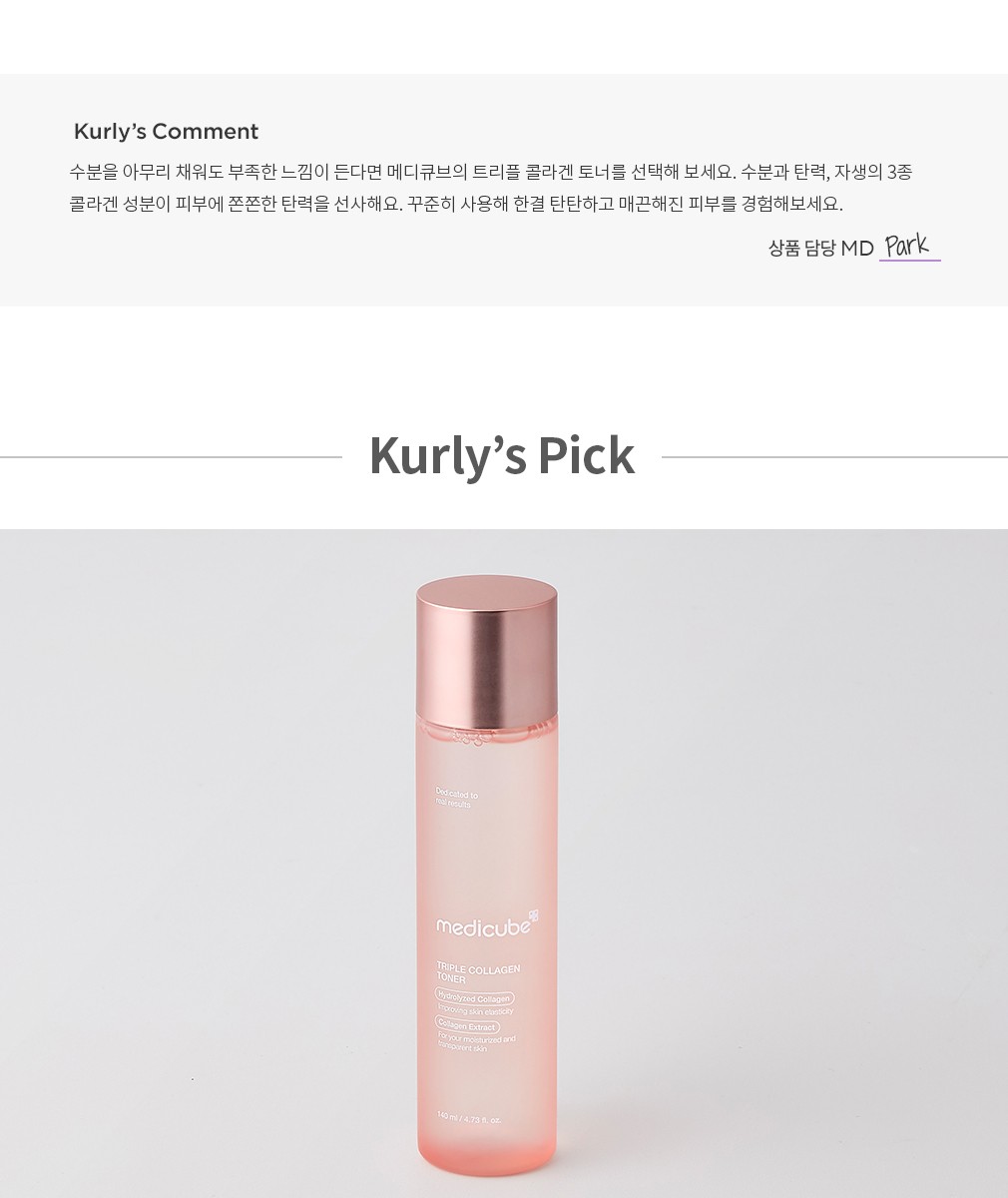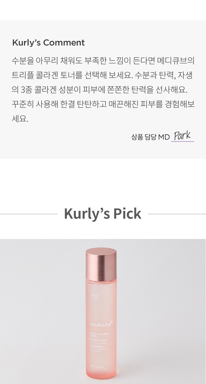 ・ 특징:3가지 콜라겐 성분을 담은 토너로 피부 수분 유지에 도움을 줘요.