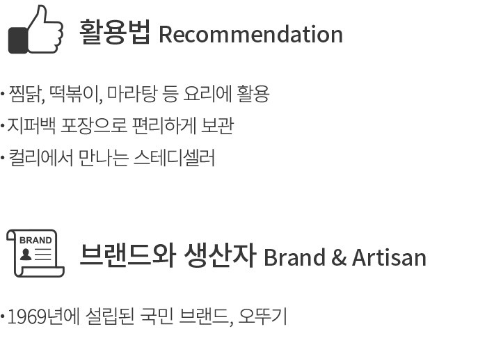 납작해서 더욱 쫄깃한 오뚜기 옛날납작당면을 소개할게요. 넓은 면발 덕에 양념이 잘 배어 들어 찜닭처럼 국물이 자작한 요리에 잘 어울린답니다. 자른 형태로 지퍼백 포장에 들어 있어 간편하게 즐기실 수 있어요. 꼭 필요한 순간,장바구니에 쏙 담아보세요.