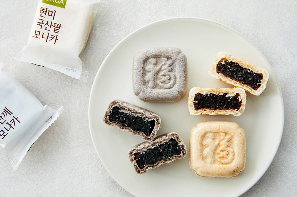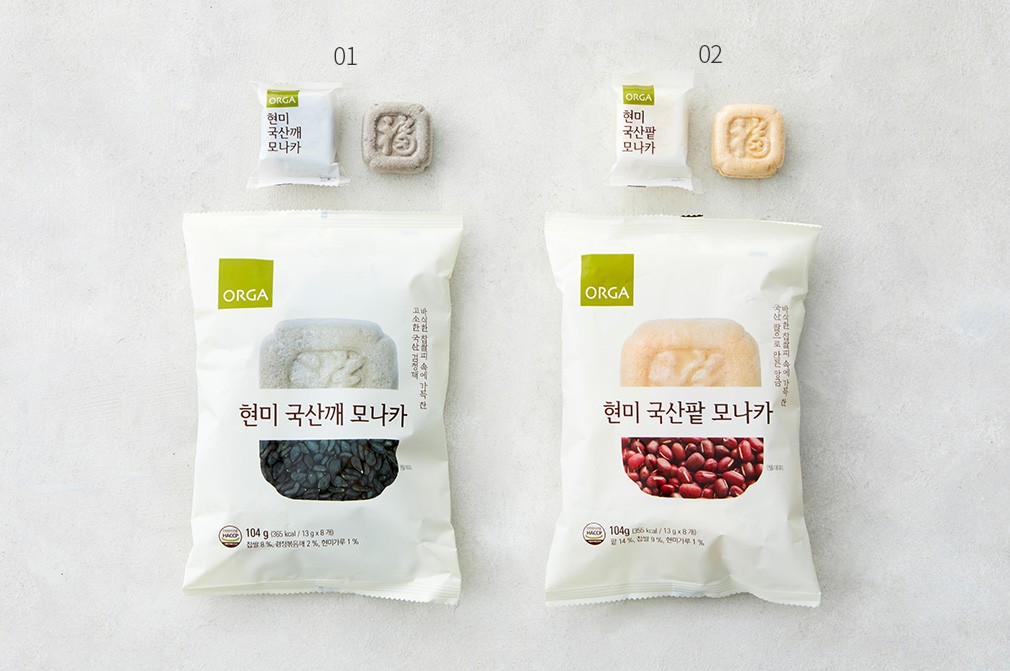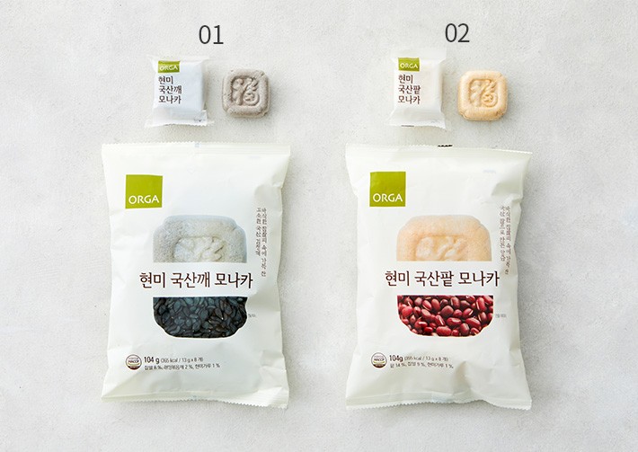 국산 찹쌀과 현미로 고소하고 담백한 맛을 낸 ORGA의 현미 국산 모나카를 만나보세요. 부드럽고 얇은 피가 달콤한 앙금을 감싸고 있는데요. 고소한 검정깨를 볶고 통통한 팥을 으깨어 각각의 앙금을 완성했지요. 한입에 쏙 넣을 수 있는 크기로 하나씩 개별 포장했으니 입이 심심할 때 달달하게 즐겨보세요.