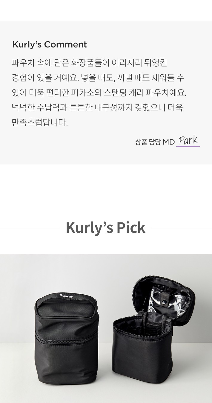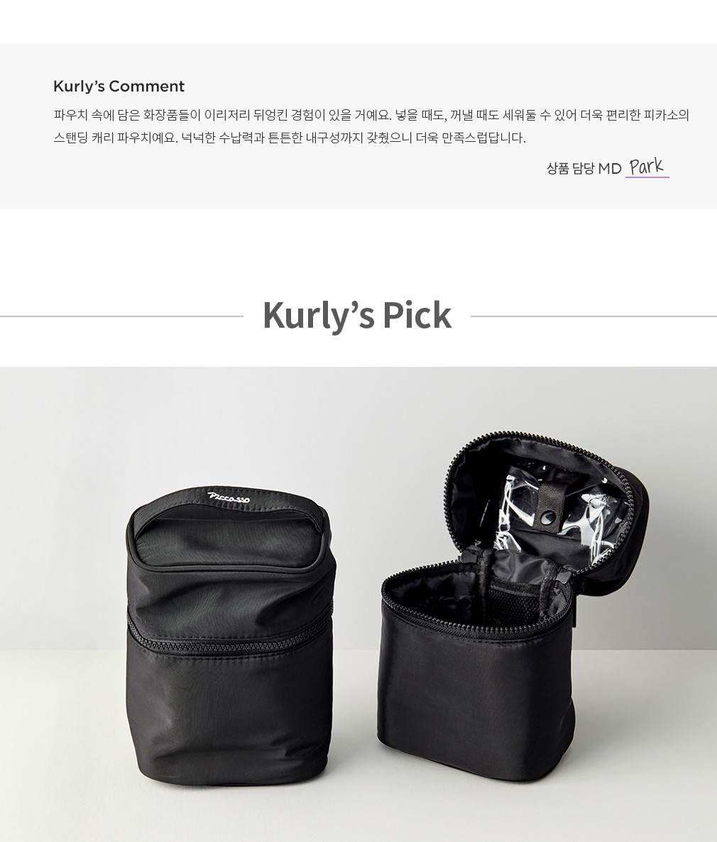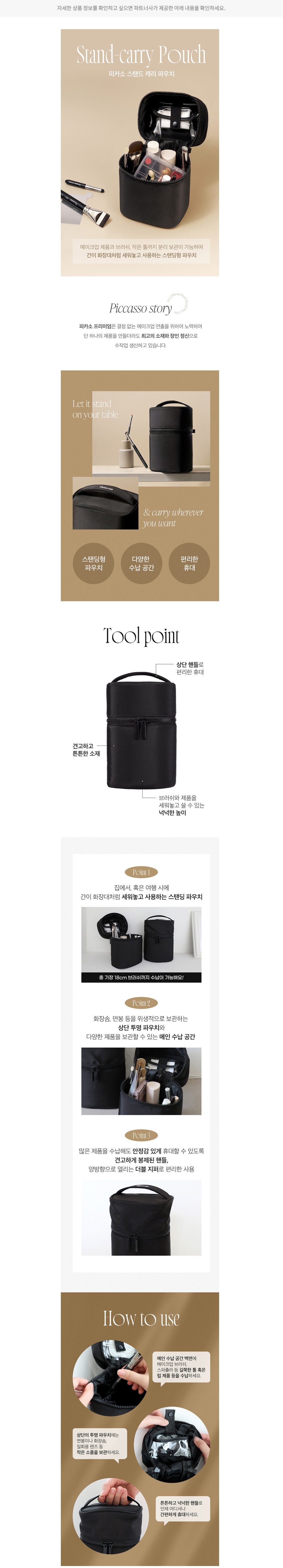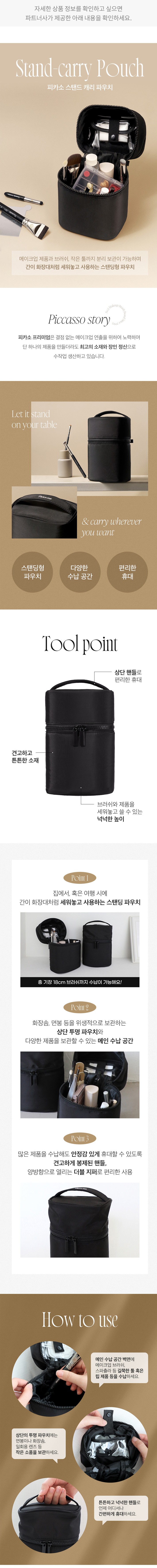 ・ 특징:다양한 화장품과 브러쉬,소품 등을 넉넉하게 담을 수 있는 파우치입니다. 세워서 사용할 수 있어 편리해요.
