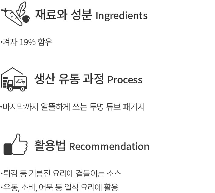 겨자만 있으면 그 어떤 느끼한 음식도 마지막까지 경쾌하게 즐길 수 있어요. 이번에 소개할 에스앤비의 겨자는,정제수를 섞은 겨자분이 아니라 진짜 겨자를 19% 함유하고 있어 톡 쏘는 풍미가 한층 도드라져요. 돈까스나 만두,튀김과 찰떡 궁합을 이후는 알싸함이죠. 투명한 튜브에 담겨 있어 마지막까지 깔끔하게 짜서 쓸 수 있답니다.
