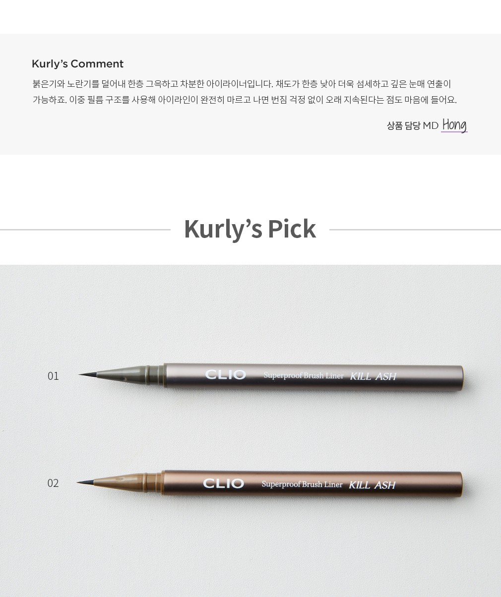 02. 수퍼프루프 브러쉬라이너 킬애쉬 애쉬브라운・ 중량 :1개(0.14g) ・ 특징 :붉은기나 노란기를 덜어내 한층 그윽한 느낌을 주는 애쉬브라운 컬러입니다.