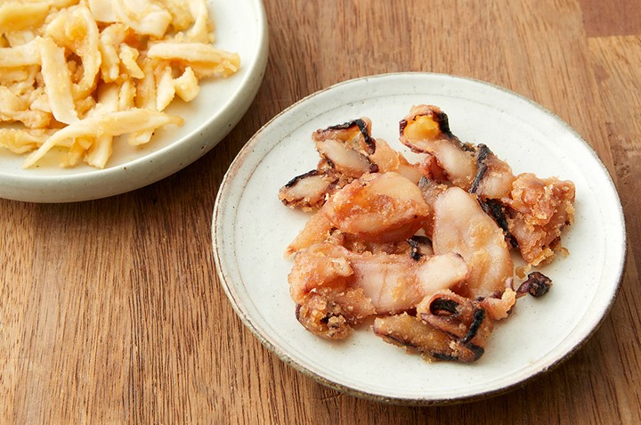 ?특징:큼직한 다리 부위를 얇게 저민 뒤 땅콩 버터 소스를 묻혔어요. 쫄깃쫄깃한 식감을 좋아하시는 분께 추천드려요.