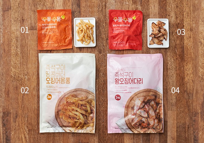 01~02. 땅콩버터 즉석구이 오징어 몸통?선택가이드:①1봉(80g),②1팩(80g X 3봉) 중 선택하세요.