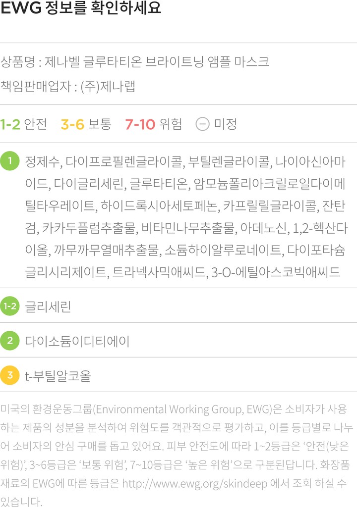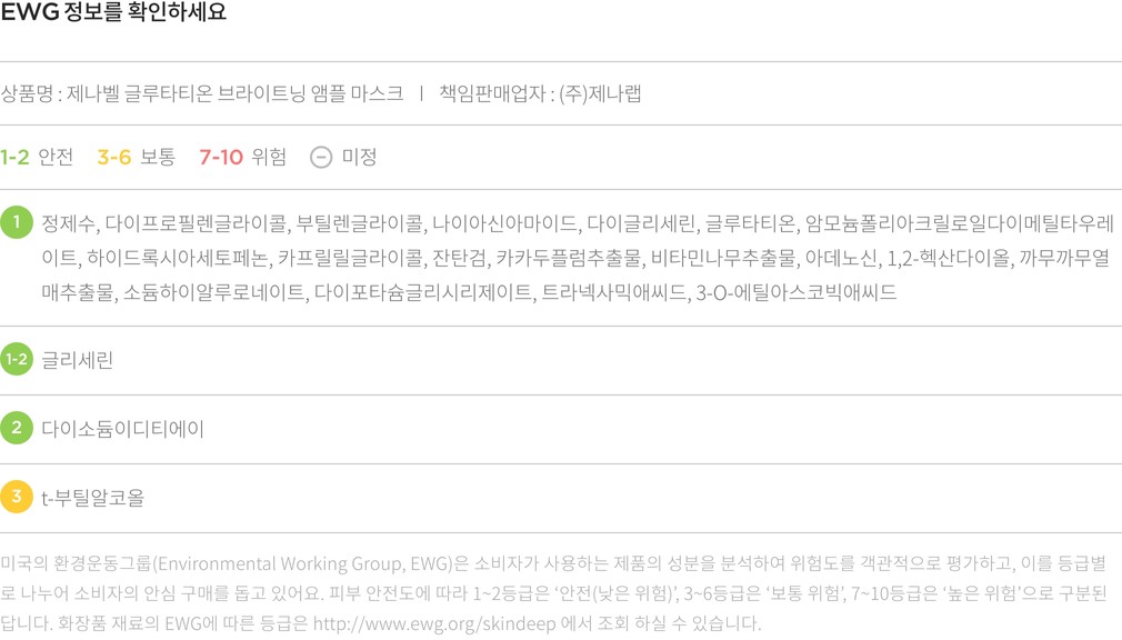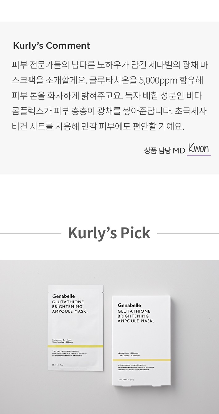 ・ 특징:글루타치온을 5,000ppm 함유해 피부 톤을 개선하는 광채 마스크팩입니다.