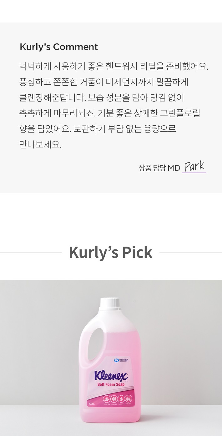・특징:부담 없는 대용량 핸드워시 리필입니다. 상쾌한 그린플로럴 향을 담았어요.
