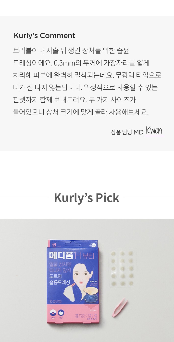 ・ 특징:트러블 상처를 위한 도트형 습윤 드레싱입니다.