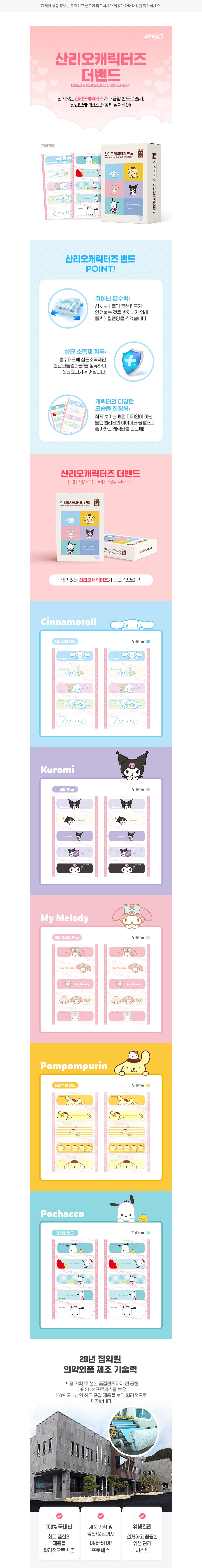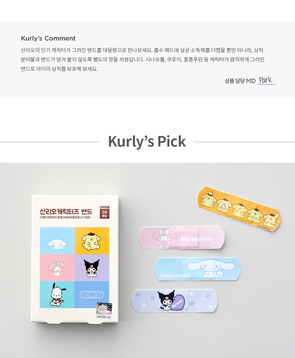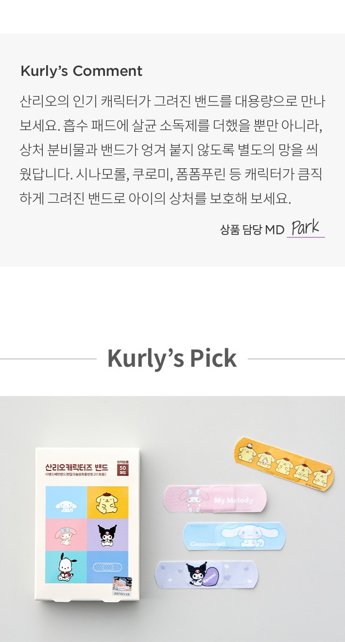 ・ 특징:산리오 캐릭터가 그려진 밴드입니다. 흡수 패드에 살균 소독제와 별도의 망을 더했어요.
