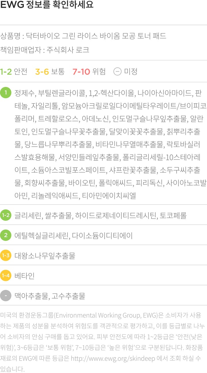 ・ 특징:녹미 추출물과 유산균 성분을 배합한 에센스에 토너 패드를 촉촉하게 적셔 완성했어요.