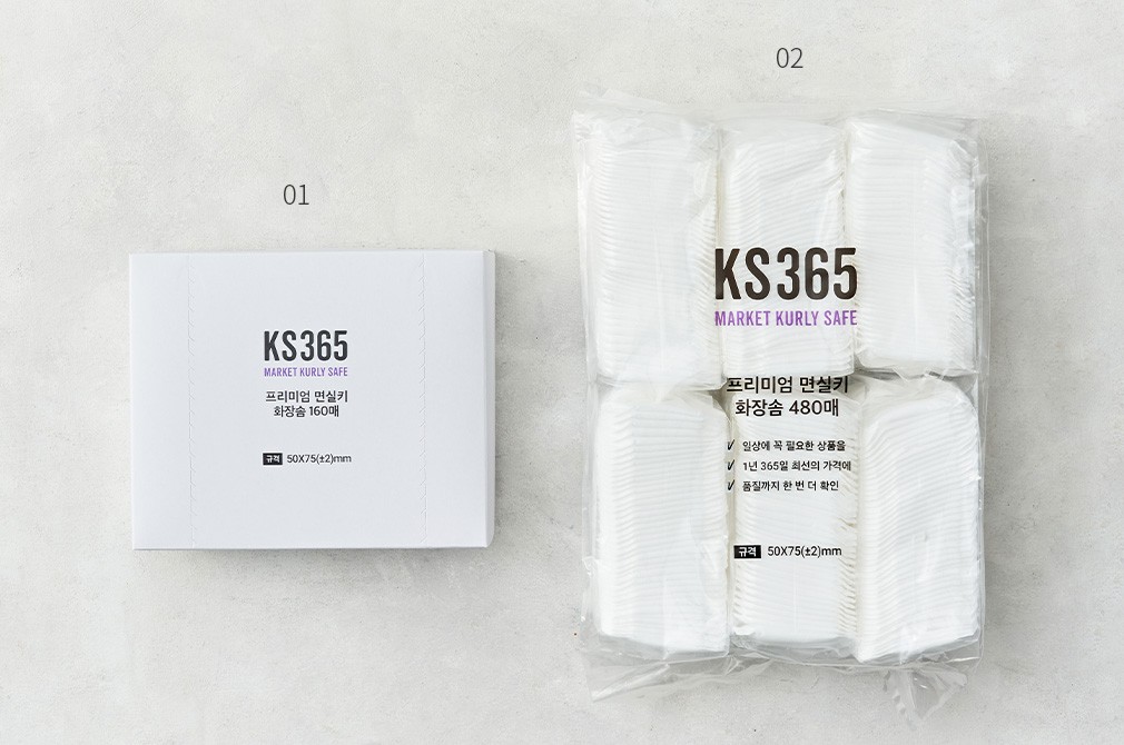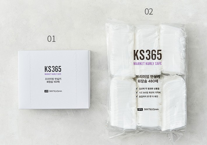 01~02. 프리미엄 면실키 화장솜 ・ 선택가이드:①160매,②480매 중 선택하세요.