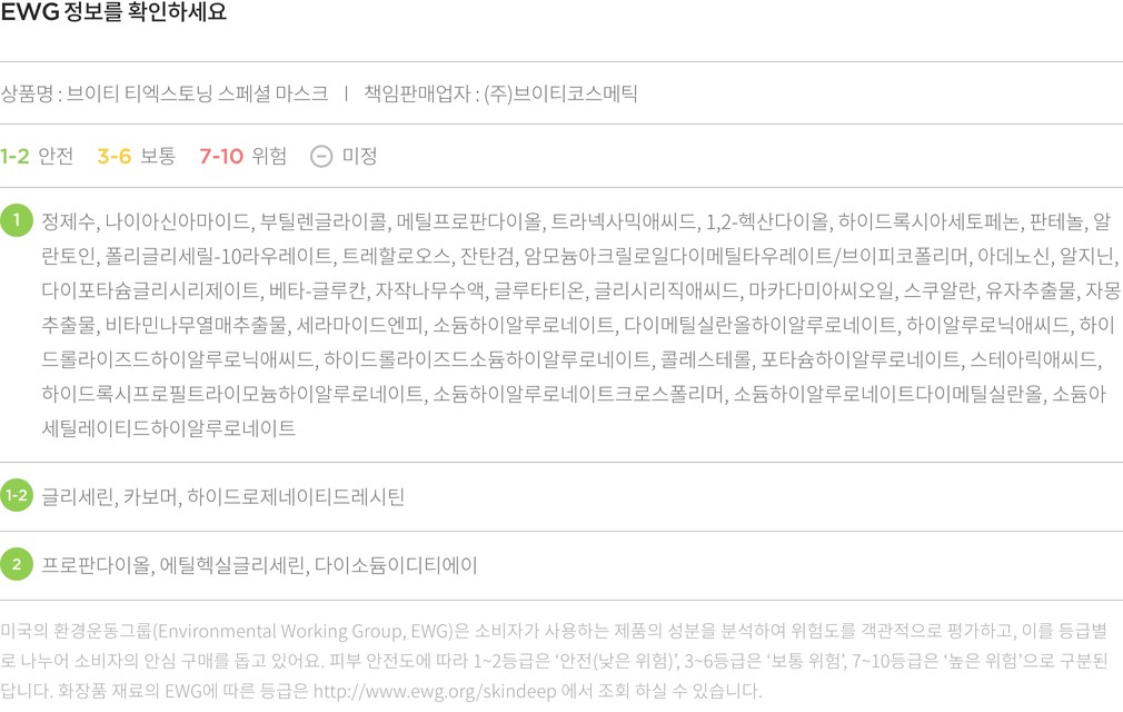 ・특징:칙칙한 피부를 환하게 케어하는 집중 토닝 케어 마스크팩입니다.