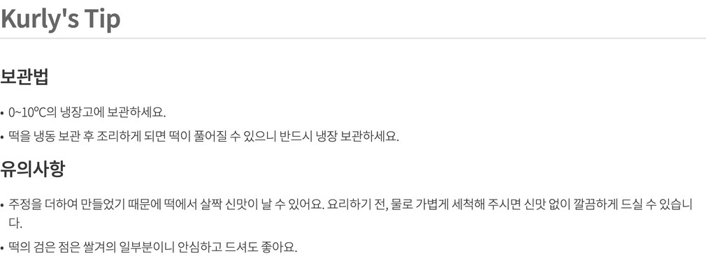 | 알레르기정보 | 이 제품은 알류,메밀,대두,밀을 사용한 제품과 같은 제조시설에서 제조하고 있습니다. |