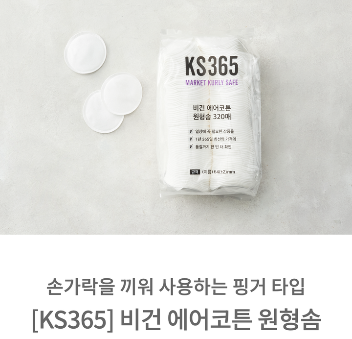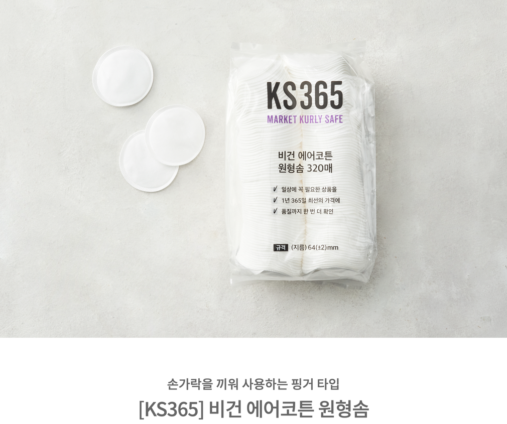 [KS365] 비건 에어코튼 원형 화장솜 320매(대용량)_오코텍스,비건인증