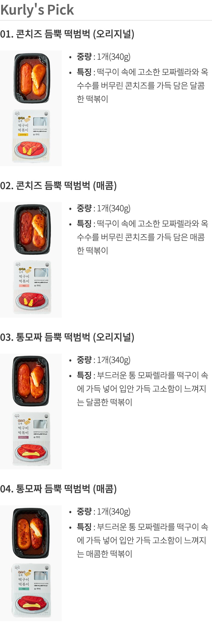 | 알레르기정보 | - 콘치즈:우유,대두,밀,알류 함유 - 통모짜:우유,대두,밀 함유 - 본 제품은 알류,메밀,땅콩,고등어,토마토,게,새우,돼지고기,쇠고기,복숭아,아황산류,호두,닭고기,오징어,조개류(굴,전복,홍합 포함),잣을 사용한 제품과 같은 제조시설에서 제조하고 있습니다. |