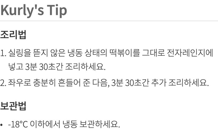 | 포장타입 | 냉동 (종이포장) 택배배송은 에코 포장이 스티로폼으로 대체됩니다. |