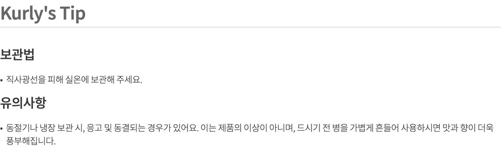 | 포장타입 | 상온 (종이포장) 택배배송은 에코 포장이 스티로폼으로 대체됩니다. |