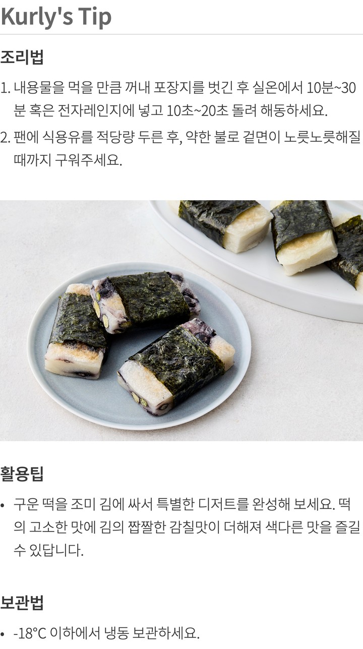 | 알레르기정보 | - 대두 함유 * 알류,메밀,땅콩,밀,게,새우,아황산류,호두,잣 혼입가능 |
