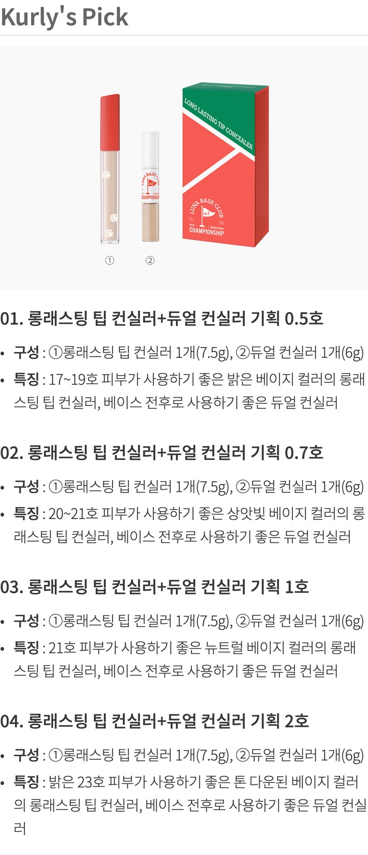 [루나] 롱래스팅 팁 컨실러+듀얼 컨실러 기획 (챔피언십 에디션) 4종 (택1)