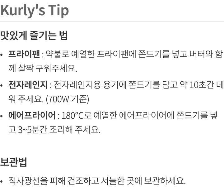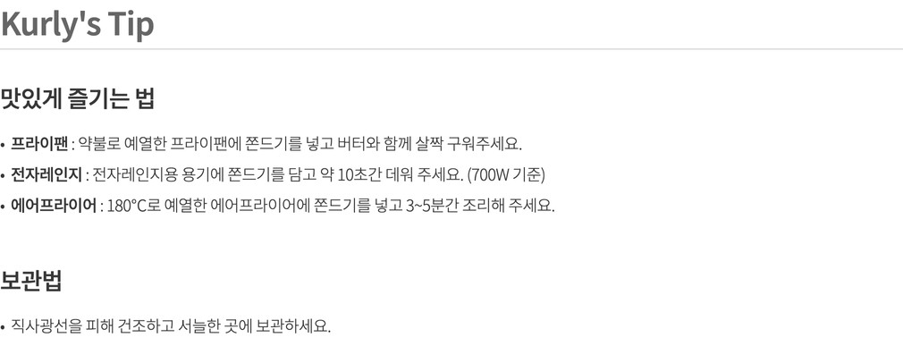 | 포장타입 | 상온 (종이포장) 택배배송은 에코 포장이 스티로폼으로 대체됩니다. |