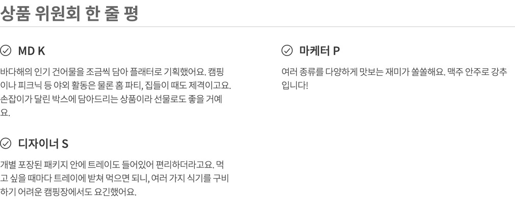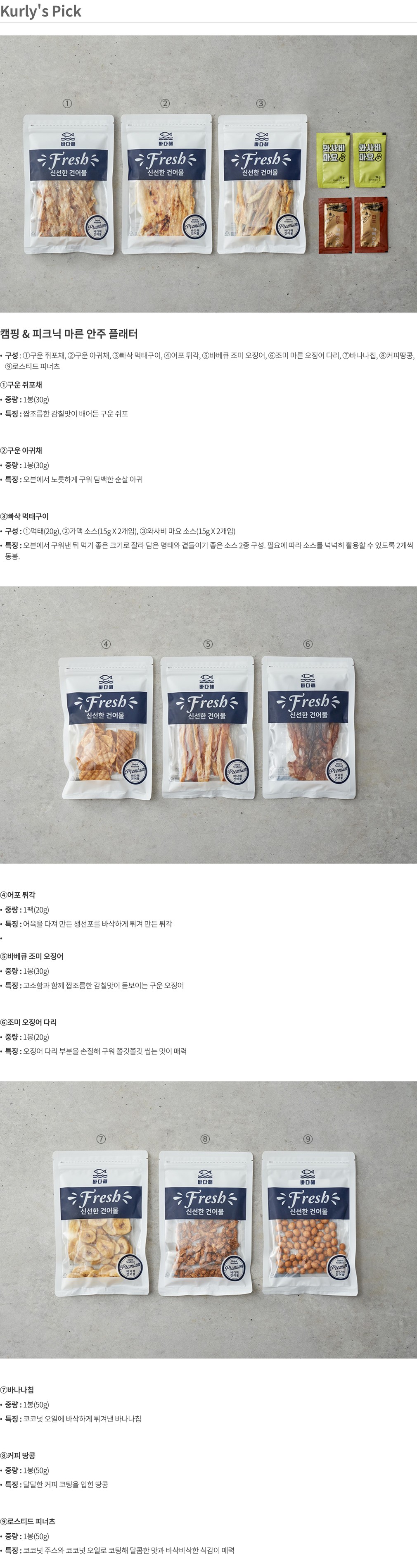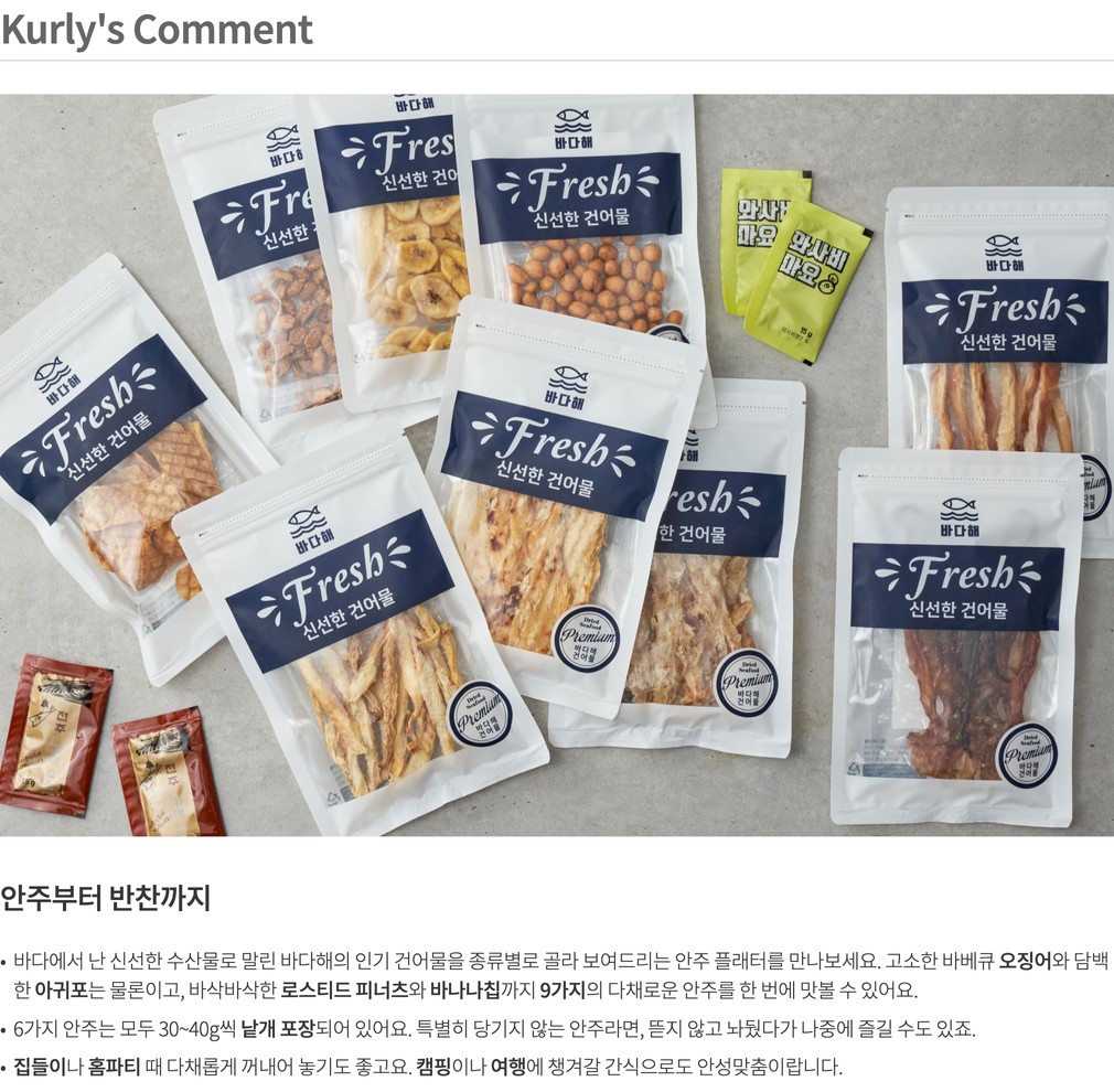 알레르기정보 | - 어포튀각:대두,밀 함유 - 바베큐 조미오징어:오징어,우유,대두 함유 - 조미 마른 오징어다리:오징어 함유 - 커피 땅콩:땅콩 함유 - 로스티드 피너츠:땅콩,밀 함유 - 와사비 마요 &전주 가맥소스:난류,대두,밀 함유 |