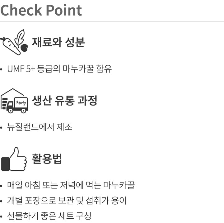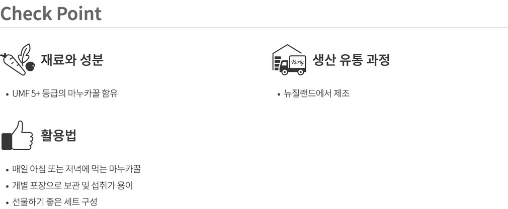 유의사항 | 만 1세 미만의 유아 및 원료에 알레르기가 있는 분은 섭취 불가합니다. |