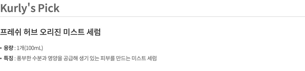 ![[네시픽] 프레쉬 허브 오리진 미스트 세럼 100ml - Kurly USA](http://www.kurlyglobal.com/cdn/shop/files/f00333ef-4129-40f2-8982-562420a621ff.jpg?v=1752687025&width=180)