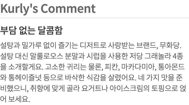 알레르기정보 | 옵션 별 알레르기 유발 가능 원재료가 상이하므로 제품 페이지 하단 확인 부탁드립니다. |