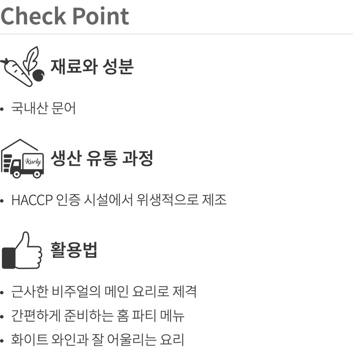 | 알레르기정보 | 본 제품은 고등어,게,새우,토마토,쇠고기,오징어,조개류(굴,전복,홍합 포함)를 사용한 제품과 같은 제조시설에서 제조하고 있습니다. |