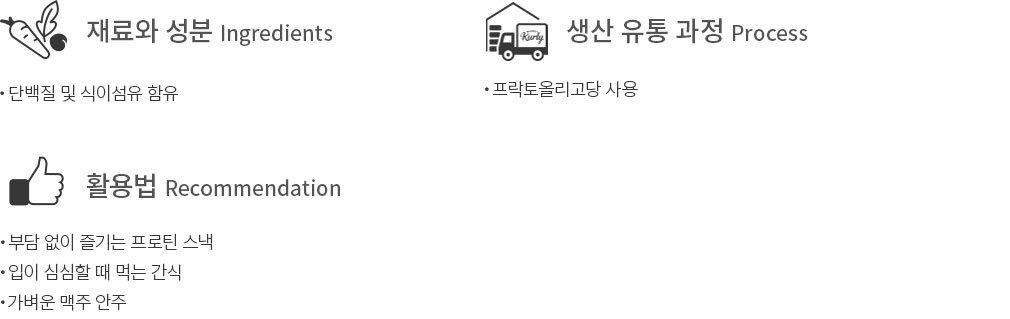 ・ 특징:약과 파우더를 더해 만든 프로틴 과자입니다. 바삭한 식감과 달달한 맛이 돋보여요.