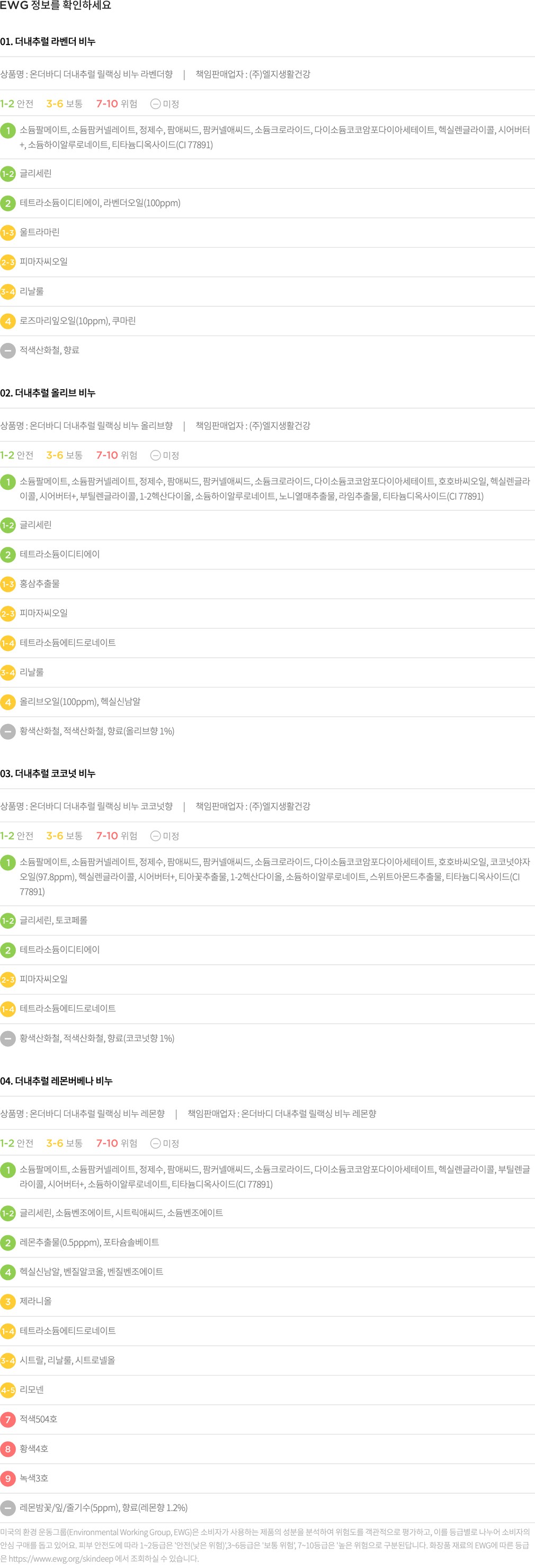 관련된 추가 정보와 세부 사항은 캘리포니아 주 공식 웹사이트(www.P65Warnings.ca.gov/food)에서 확인 가능합니다.