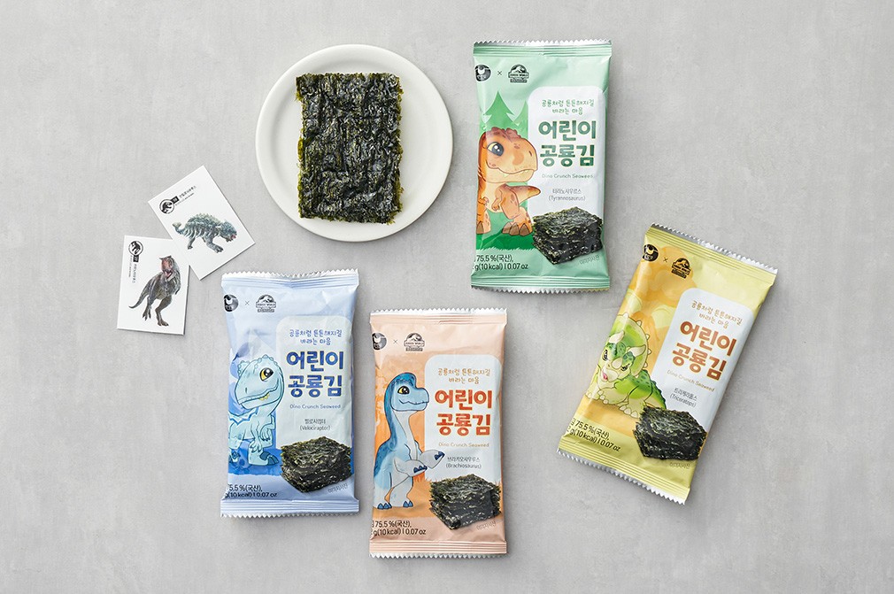 김만 있어도 밥 한 그릇 뚝딱 해치우는 아이들을 위해,소금과 기름을 줄여 담백하게 완성한 김을 소개할게요. 자극적이지 않고 순한 맛이라 아이 입맛에 안성맞춤이에요. 쥬라기월드와의 콜라보레이션으로,공룡 패키지에 공룡 씰까지 갖춘 제품으로 보여드려요. 식사 때마다 꺼내 놓으면 한 끼의 첫 시작부터 한층 수월하고 즐거워질 거예요.