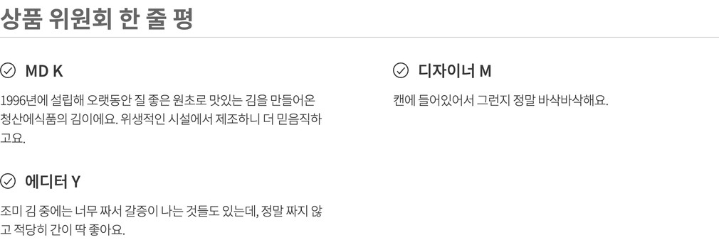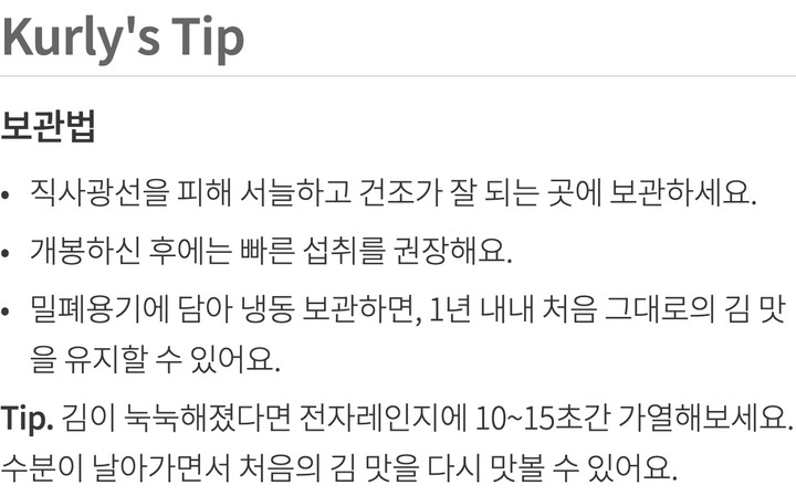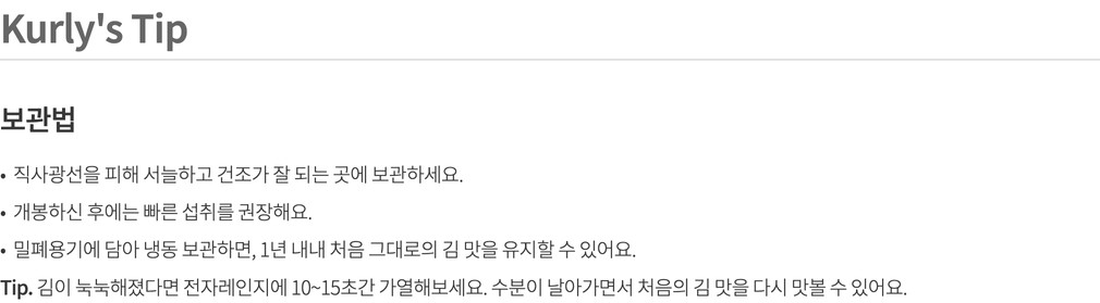 | 소비기한(또는 유통기한)정보 | 상품설명/상세정보 참조 |