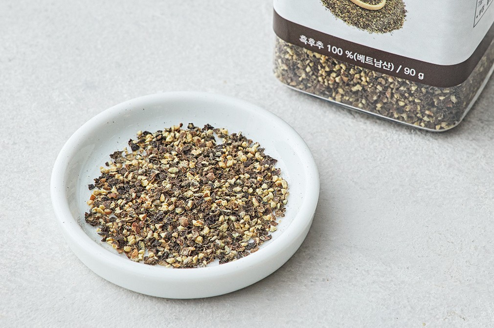 - 굵은 후추는 크고 거친 알갱이에 진한 향을 품고 있어요.