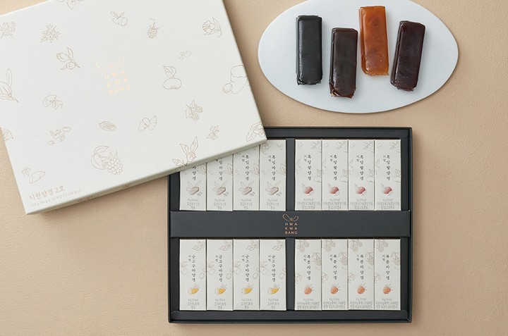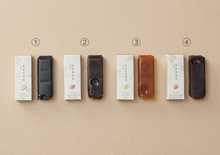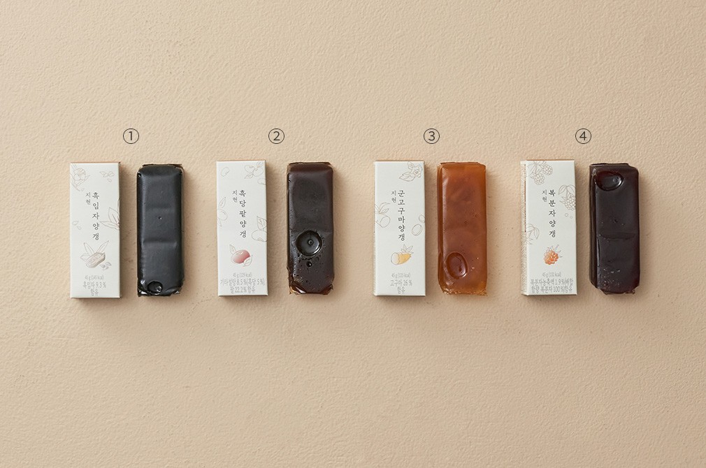지현양갱 2호 세트?구성:①흑임자양갱(45g X 4개입),②흑당팥양갱(45g X 4개입),③군고구마양갱(45g X 4개입),④복분자양갱(45g X 4개입)