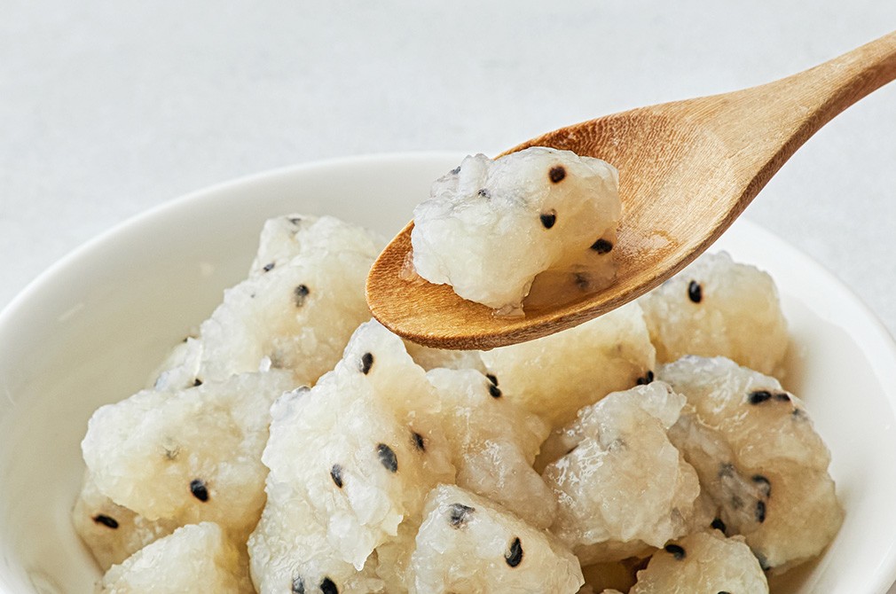 국산감자로 만들어 안심인 흑임자 감자옹심이예요. 감자를 정성껏 강판에 간 후,감자전분 등을 섞어 동그란 모양으로 만들었어요. 콕콕 박힌 국산 검정깨가 고소한 맛을 끌어 올려준답니다. 끓는 물에 3~5분만 조리하면 탱글탱글한 식감을 즐길 수 있어요. 옹심이가 당기는 날,요리의 재료로 활용해 보세요.