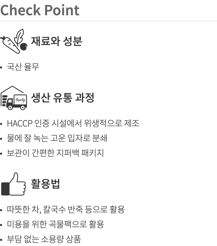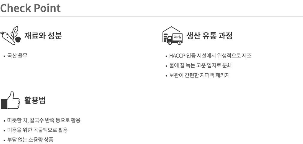 | 알레르기정보 | 본 제품은 알류(가금류에 한함),우유,메밀,땅콩,대두,밀,고등어,게,새우,돼지고기,복숭아,토마토,아황산류,호두,닭고기,쇠고기,오징어,조개류(굴,전복,홍합을 포함),잣을 사용한 제품과 같은 제조시설에서 제조되고 있습니다. |