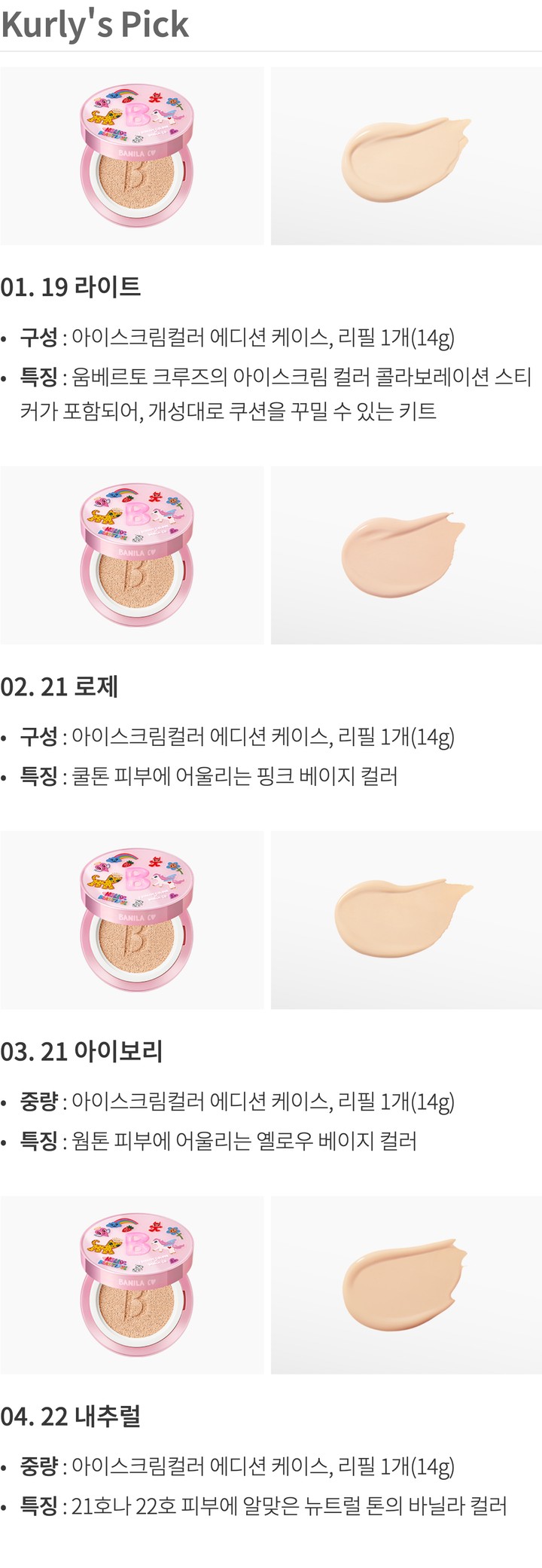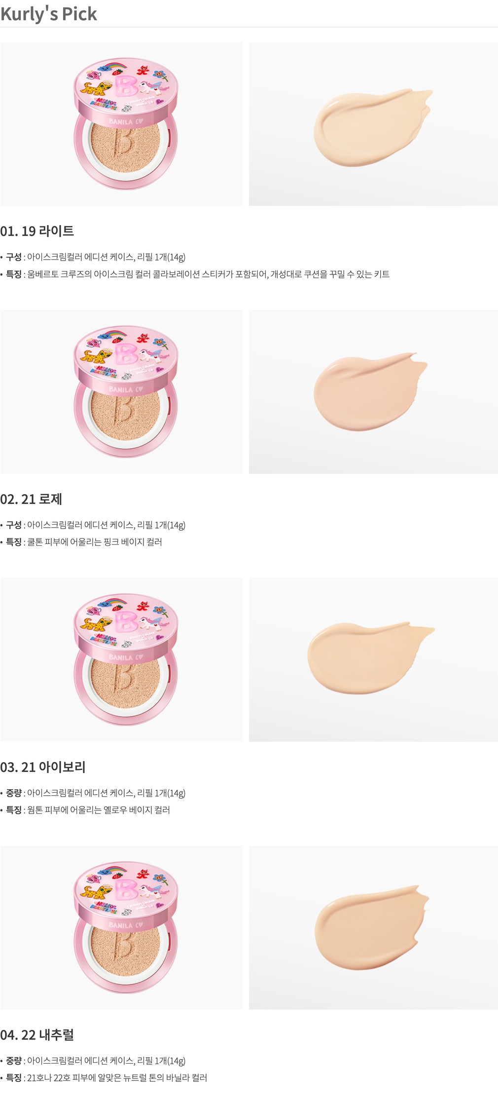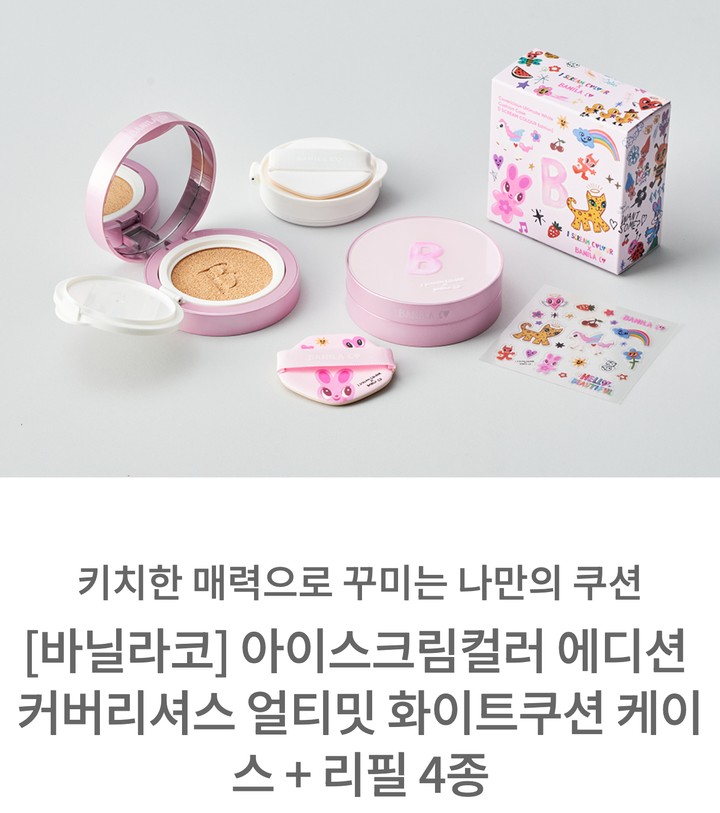 [바닐라코] 아이스크림컬러 에디션 커버리셔스 얼티밋 화이트쿠션 케이스+리필 4종 (택1)
